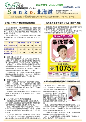 北海道事務所では、毎月、事務所からのお知らせを記載した「Sanko.北海道」を発行しておりますので、ご紹介いたします。