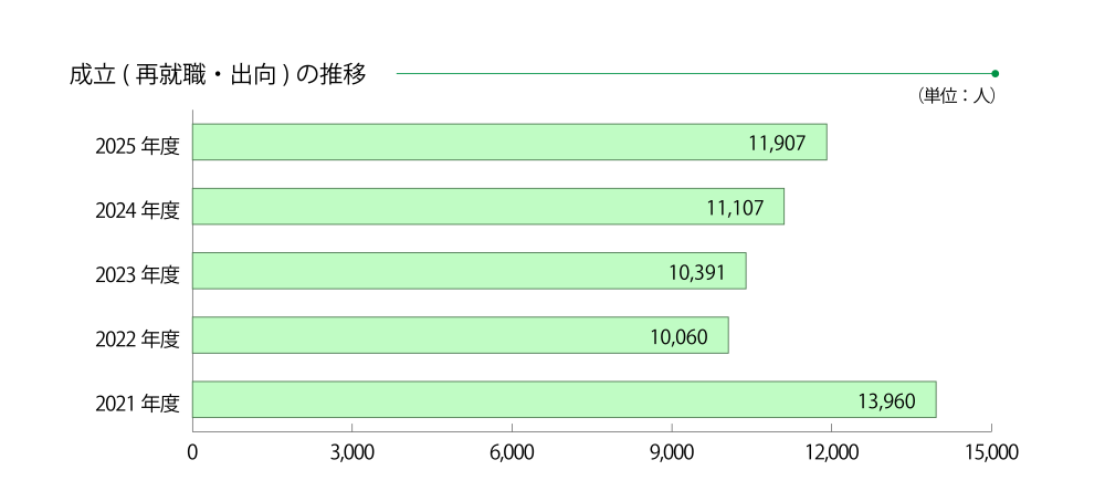 企業(事業主)を通じて再就職・出向支援サービスの利用の申し込みがあった求職者に対して、専任のスタッフが再就職の支援をいたします。
